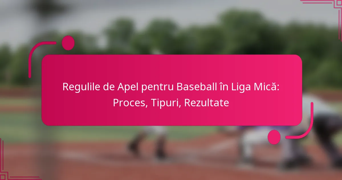 Procesul de apel în baseball-ul Little League oferă echipelor un mijloc de a contesta deciziile din joc, promovând corectitudinea și respectarea regulilor. Prin depunerea unui apel formal către oficialii ligii, echipele pot aborda preocupările legate de deciziile din joc, eligibilitatea jucătorilor și interpretarea regulilor. Rezultatele acestor apeluri pot varia, comitetul de apel având posibilitatea de a menține, anula sau modifica decizia inițială în funcție de specificul cazului.