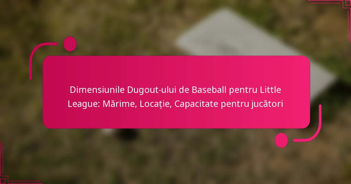 Un dugout de baseball din Little League acomodează, de obicei, între 10 și 15 jucători, în funcție de dimensiunea și designul său. Dimensiunile și aranjamentul dugout-ului joacă un rol crucial în determinarea numărului de jucători care pot încăpea confortabil, asigurând în același timp siguranța și accesibilitatea.