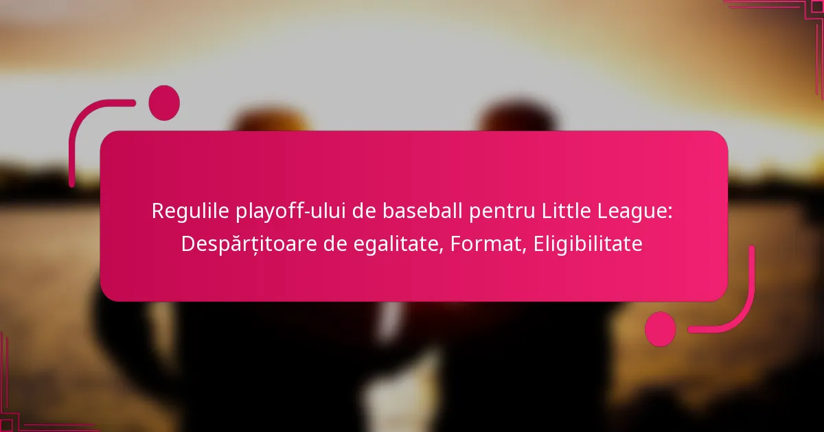 Playoff-urile de baseball din Little League sunt reglementate de reguli specifice care abordează eligibilitatea, formatul playoff-ului și procedurile de departajare pentru a menține o competiție corectă. Procedurile de departajare sunt cruciale pentru determinarea poziționării în playoff-uri între echipe cu rezultate identice, utilizând criterii precum rezultatele directe și diferența de puncte. Formatul playoff-ului poate varia, având de obicei structuri de eliminare simplă sau dublă, în funcție de reglementările ligii, echipele calificându-se pe baza performanței lor din sezonul regulat.