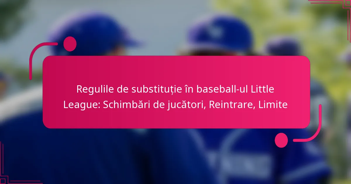 Regulile de substituție în baseball-ul Little League reglementează modul în care jucătorii pot fi substituiți în timpul jocurilor, inclusiv linii directoare pentru reintrare și limite privind schimbările. Aceste reguli sunt concepute pentru a asigura un joc corect, a menține fluxul jocului și a îmbunătăți experiența pentru toți participanții.