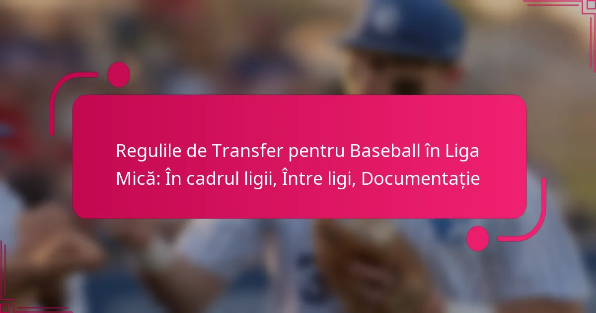Regulile de transfer în baseball-ul Little League conturează procedurile pentru jucătorii care se mută între echipe în cadrul aceleași ligi sau între ligi diferite. Familiarizarea cu aceste reguli este esențială pentru a asigura conformitatea și a facilita tranziții fără probleme pentru tinerii sportivi, deoarece fiecare tip de transfer are pași și cerințe documentare distincte care trebuie respectate.