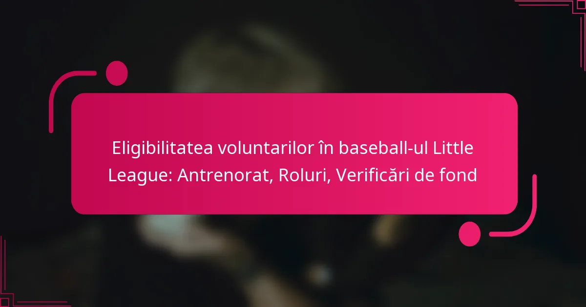 Voluntariatul în baseball-ul Little League necesită ca persoanele să îndeplinească criterii specifice de eligibilitate, inclusiv cerințe de vârstă și verificări de fond, pentru a asigura un mediu sigur pentru tinerii sportivi. Voluntarii pot prelua diverse roluri, cum ar fi antrenor sau sarcini administrative, fiecare cu propriile responsabilități și cerințe. Procesul de verificare a fondului este crucial pentru a verifica adecvarea voluntarilor, ajutând la menținerea siguranței și integrității ligii.