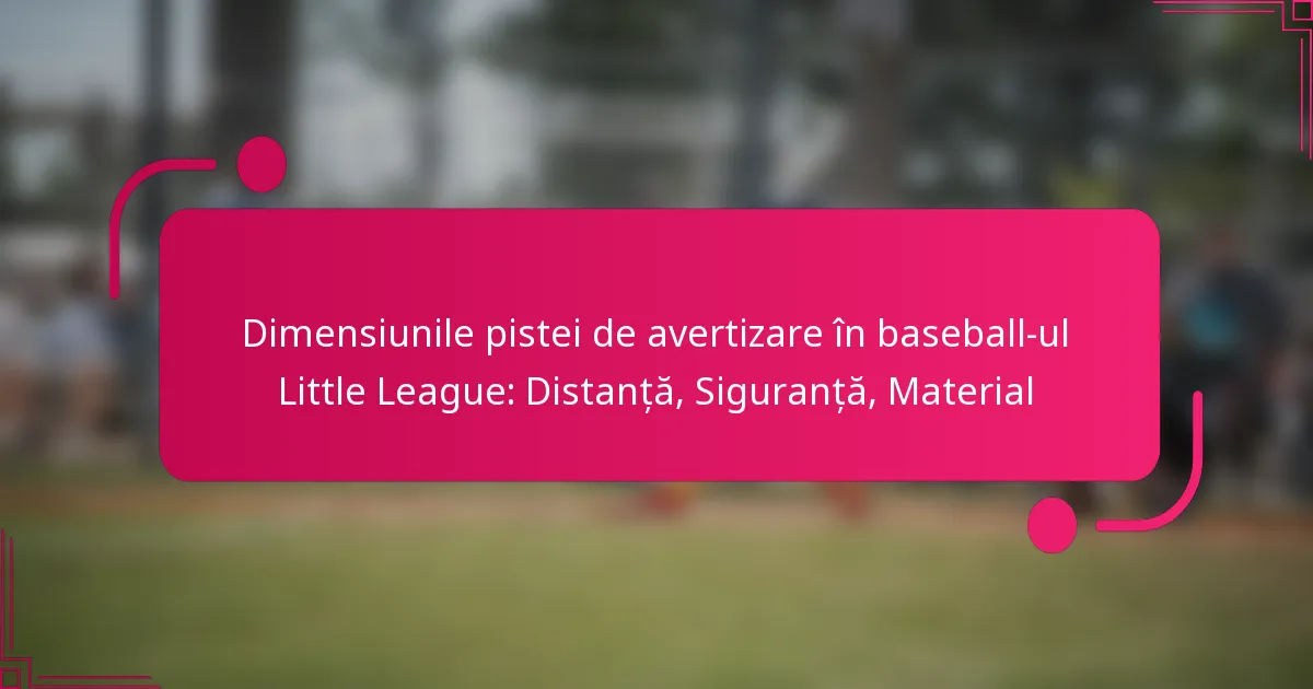 Dimensiunile standard pentru traseele de avertizare în baseball-ul Little League sunt concepute pentru a spori siguranța jucătorilor, oferind o zonă tampon între gardul din terenul de joc și terenul de joc. De obicei, aceste trasee au o lățime de aproximativ 10 picioare, dar există variații în funcție de grupa de vârstă și tipul de teren.